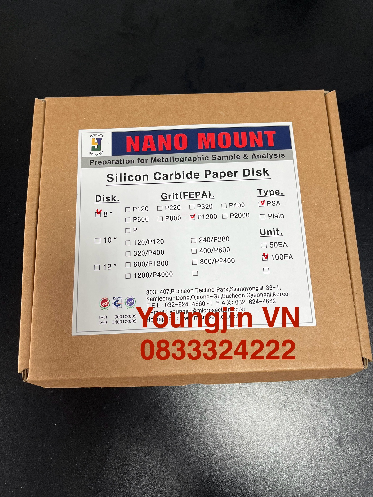| Công dụng: | – Giấy mài, dùng để mài và đánh bóng thô mẫu vật đã đúc trong phòng thí nghiệm – Grit PSA: Loại giấy có dính ở mặt dưới, sử dụng dính trực tiếp vào đĩa mài – Đường kính ngoài của giấy: 8” (inch) |