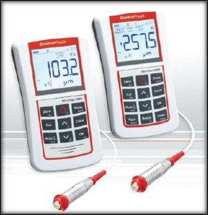 Máy đo độ dày lớp phủ không phá hủy này sử dụng cả phương pháp cảm ứng từ và dòng điện xoáy.
