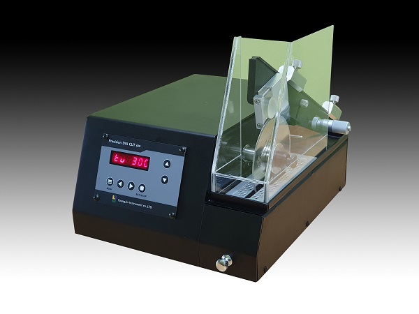 Đây là loại máy cắt có hình thái phù hợp với mẫu nhỏ và yêu cầu độ chính xác cao, hoặc mẫu dễ bị tác động bởi lực ma sát và nhiệt quá mức do cắt tốc độ cao. Máy này cắt theo phương thức điều chỉnh trọng lượng, bằng cách sử dụng trọng lực và gá cố định mẫu giúp cố định nhiều loại hình mẫu. Máy dùng lưỡi cắt xoay, có sẵn dung dịch cắt để làm mát và bôi trơn nên không cần cấp dầu nhớt, dầu làm mát riêng trong khi sử dụng. Ngoài ra, đi kèm với máy còn có thước đo có thể giúp điều chỉnh theo đơn vị micromet để cắt chính xác.
